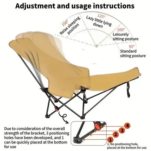 Cadeira reclinável dobrável portátil, estrutura de aço com enchimento de esponja, espreguiçadeira de piquenique de campismo ao ar livre ajustável manual, sem necessidade de eletricidade, fácil limpeza, cadeira de campismo.